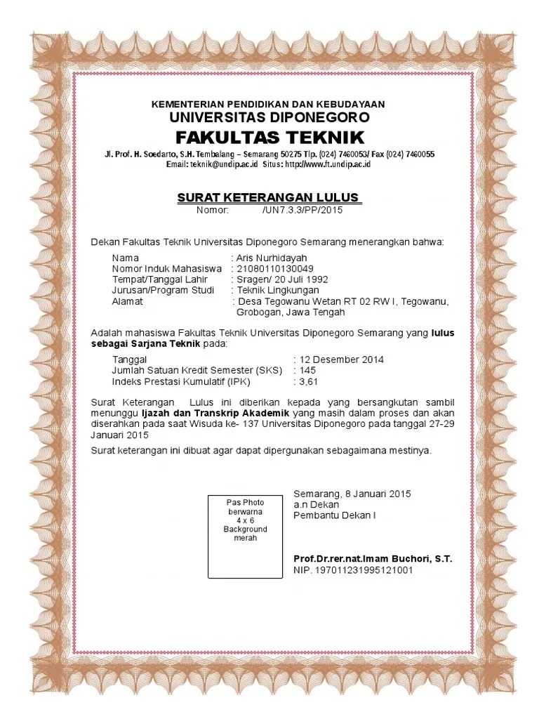 Surat berhasil dibuat dan akan. Persyaratan untuk masuk program internasional feb undip. Surat pernyataan dari tiga tetangga terdekat yang bukan saudara yang menjelaskan kondisi . Surat keterangan aktif kuliah feb undip. Kementerian riset, teknologi, dan pendidikan tinggi universitas diponegoro sekolah vokasi jl.